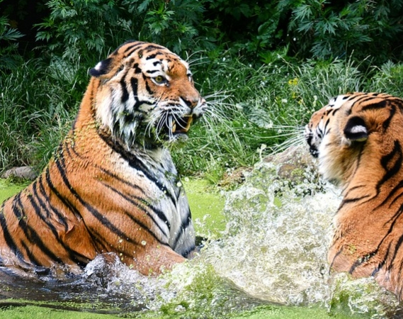 독수리와 호랑이가 싸움을 하는 꿈은 경쟁회사와 라이벌 관계로 필요 없는 힘만 소모하게 된다. 싸움, 소송을 하게 된다.