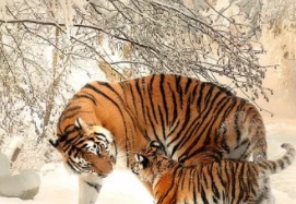호랑이가 새끼를 낳는 것을 본 꿈은 사업이 잘되어 번창하여 확장하게 되거나, 한 단체나 조직의 휘하에 부하를 많이 거느리게 될 징조. 새식구,직원고용,출산 등을 암시하는 길몽이다.